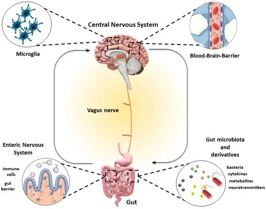 ⚡ Vagus nerve signalling: Gut microbes send calming signals directly to the brain through this major nerve pathway.