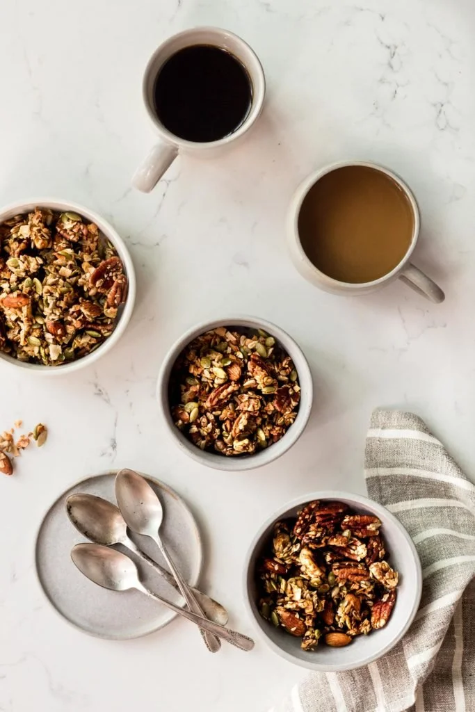 Grain-Free homemade granola offers a wholesome nutrient dense alternative to traditional breakfast or store-bought options were, if your not careful with reading labels, a blend of the wrong ingredients will set you up for blood sugar spikes and wreak havoc with your hunger and inflammatory profile across the day.