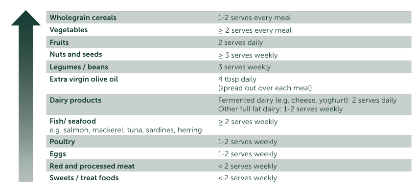 The MedDiet encourages a high intake of plant-based foods and emphasises Olive Oil as it’s main oil.