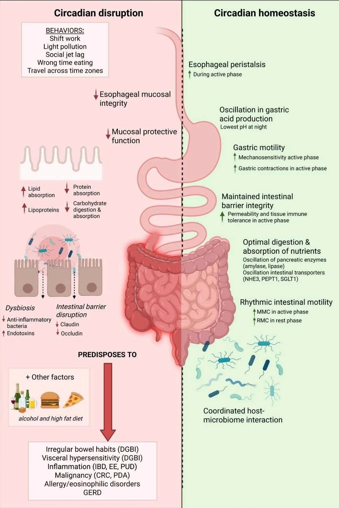 When your circadian signals as misaligned, your GI tract doesn’t just get upset, it can shift into a different operating mode.